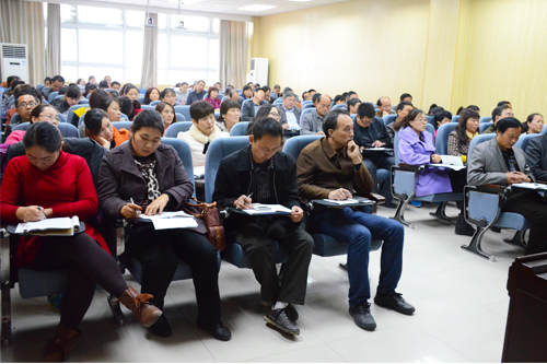三楼会议室为国培学员做了以“关注课堂、务实高效”为题的讲座,解答了广大学员对初中思想品德课堂教学的疑惑,来自河南省各地的百余名农村中小学教师参加培训。