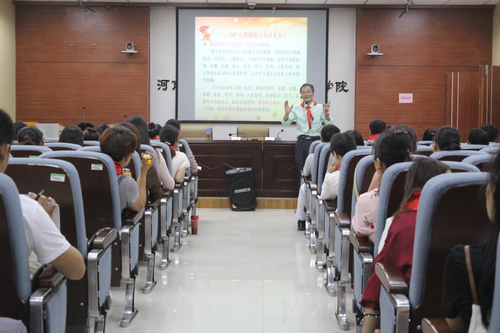 在授课中,郑老师通过举例、问答、情景模拟等趣味方式,生动形象地告诉学员们要如何做一个少先队礼仪的“消防员”。郑老师阐明,组织教育、自主教育和实践活动分别是规范少先队礼仪的根、命、魂,而要牢牢抓住“根命魂”,少先队辅导员必须深入了解少先队各项规定。因此,郑老师还为各位学员带来了中央有关少先队礼仪的最新规定。讲座尾声,郑宁远老师勉励各位学员要坚持初心,忠于优秀,在平凡中做出不平凡的事业,为此次讲座画上了圆满的句号。