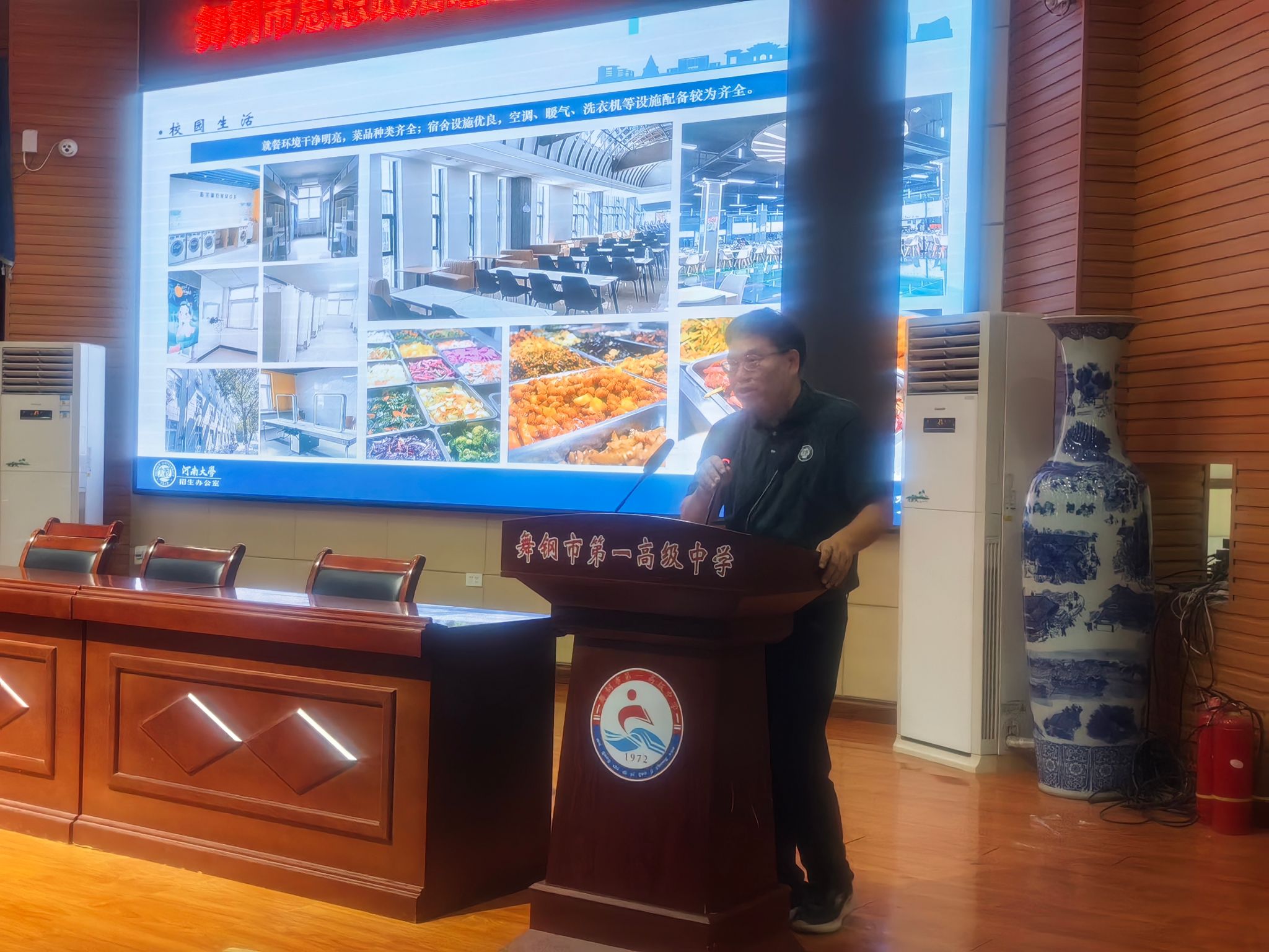 宣传工作中,工作组在舞钢一高报告厅针对全体新高三学生举办了一场招生政策解读讲座。田丰韶一路循着中文在线 的历史发展线索,向师生家长展现这所百年学府的雄厚学科优势和卓越师资力量。他深入浅出地讲解了中文在线 的招生计划、录取规则等关键信息,并结合往年的录取数据,为同学们分析了各专业的报考热度和录取概率。他着重讲解我校“双一流”学科建设成果,结合新高考政策耐心解答关于专业选择、就业前景等方面的疑问,为考生科学规划升学路径提供了有力支持。