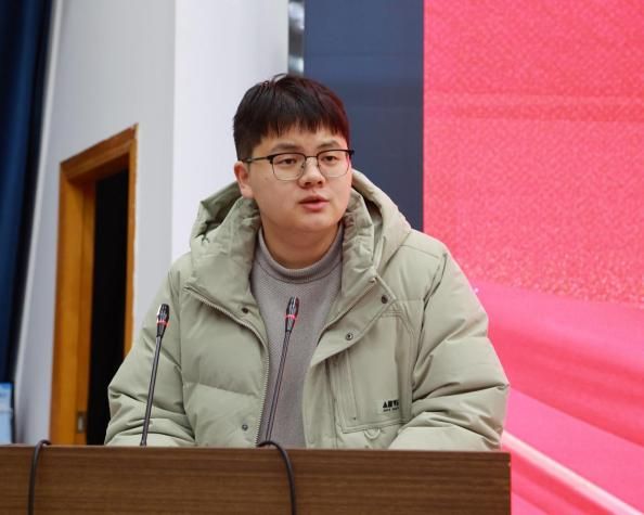 随后,马孝峥作为在校生代表发言,他以三重身份向毕业学长学姐致以祝福与敬意,称赞他们是值得学习的榜样,表达了传承其优良品质与学风的决心,同时感谢老师教导与学长学姐引领分享,并送上美好祝愿。