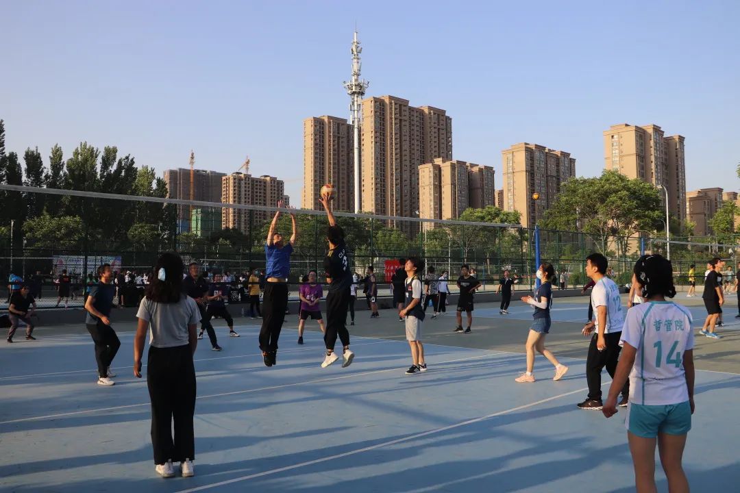 于金明校区排球场举行师生联谊排球赛。