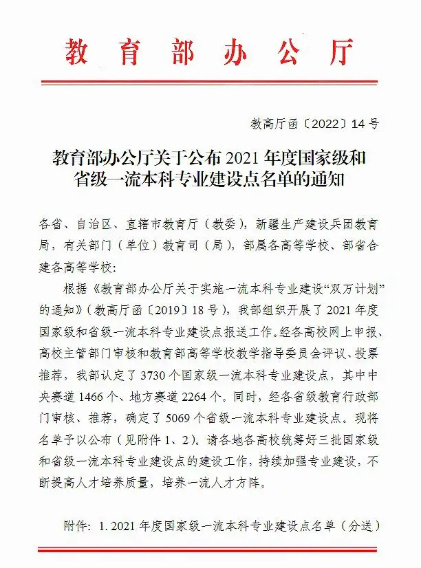 近日,教育部办公厅公布了《2021 年度国家级和省级一流本科专业建设点名单》(教高厅函〔2022〕14 号),中文在线