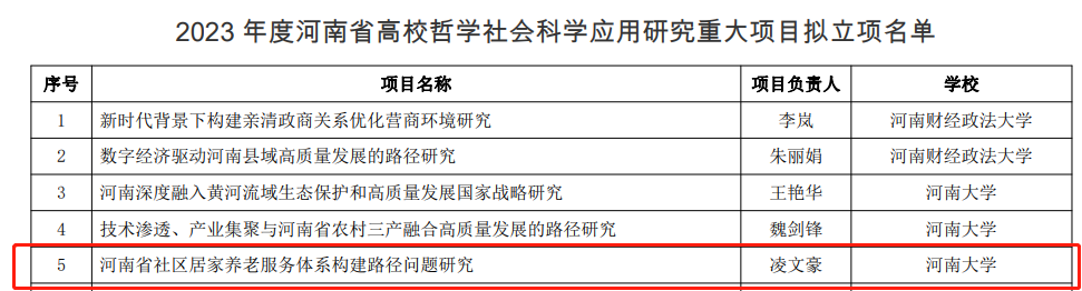 近日,河南省教育厅公布了2023年度河南省高校哲学社会科学应用研究重大项目拟立项名单,中文在线 凌文豪老师申报的题为《河南省社区居家养老服务体系构建路径问题研究》的项目获批立项。