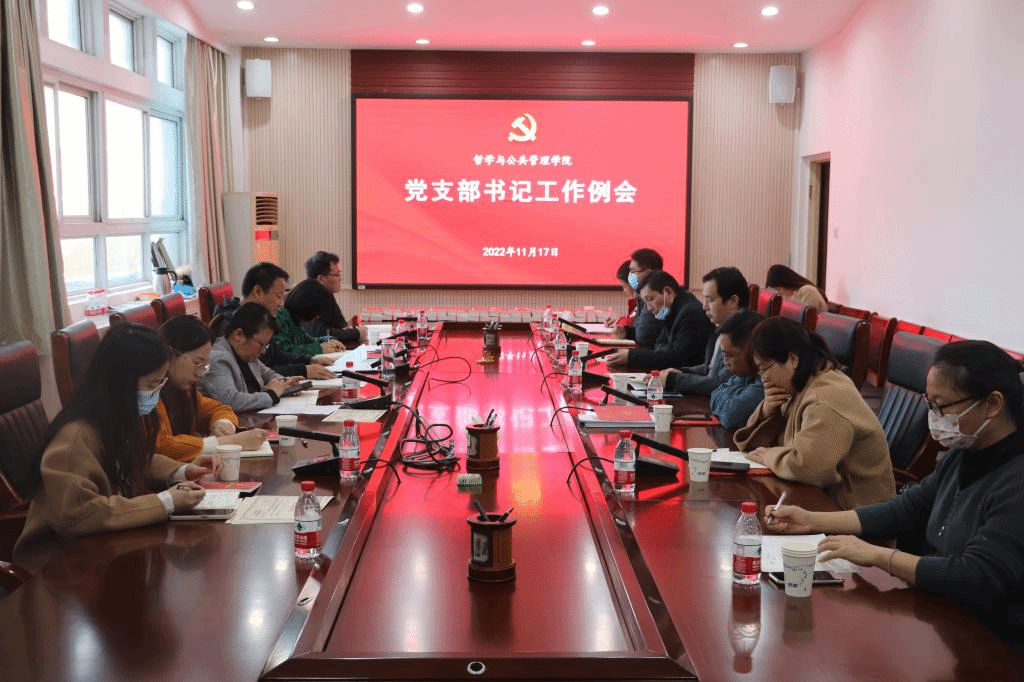 党支部书记汇报了党支部近期工作情况以及下个月工作计划。学院党委充分肯定了各支部的工作成绩,并指出今后的努力方向。最后,学院党委向与会成员发放党的二十大学习资料,并合影留念。