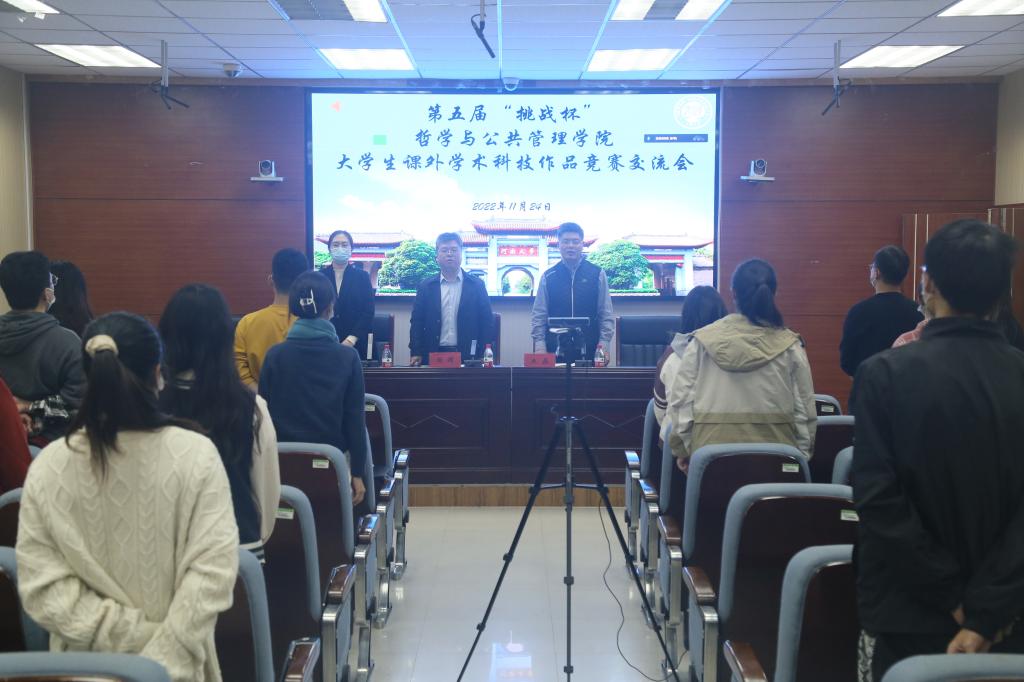 于第一会议室举行第五届“挑战杯”大学生课外学术科技作品竞赛交流会。行政管理系教授刘辉,劳动与社会保障系副教授李晓玉,社会工作系副教授朱磊受邀出席,各参赛队伍代表参加了本次交流会。