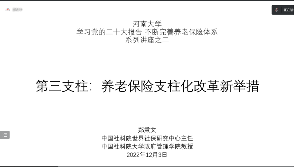 师生在线作了题为《第三支柱:养老保险支柱化改革新举措》的学术报告。此次讲座由中文在线