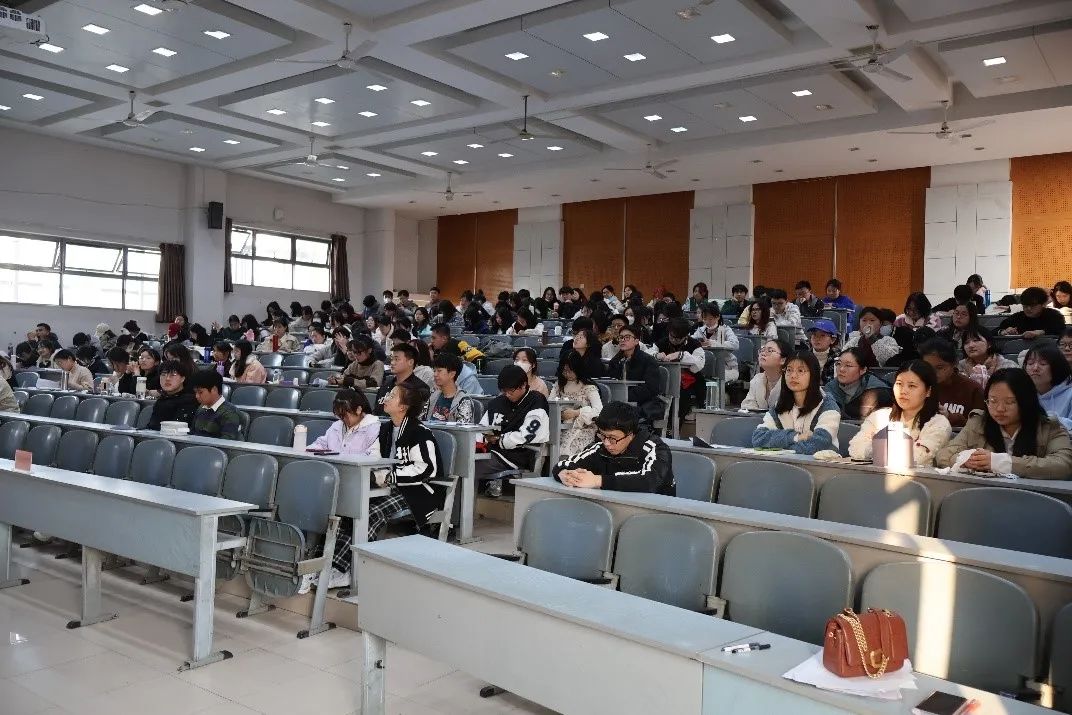 赵炎峰围绕为什么考研、考研的发展趋势、院校与专业选择三方面作专题讲座。他希望同学们坚持目标导向,理清考研动机。针对考研人数和考研难度逐年增加的现状,他鼓励同学们勇于挑战,早做准备。在院校和专业选择上,他建议同学们先定专业后择学校,综合考量时间与精力的性价比,合理选择目标院校。