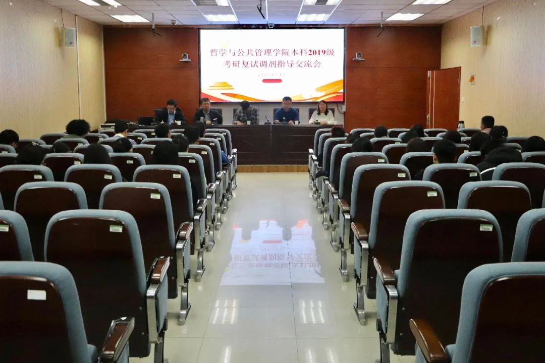 于院第一会议室召开2019级考研复试交流会。院党委副书记骆春丽、副院长赵炎峰、劳动与社会保障专业凌文豪教授、行政管理专业刘辉教授应邀出席,2019级考研同学参加会议,会议由2019级辅导员孙少飞主持。