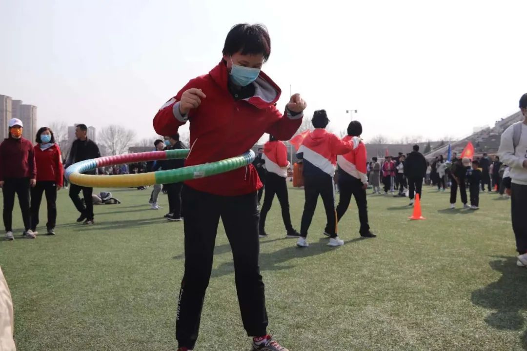 参赛教职工们昂扬精神、齐心协力,通力配合,他们步伐齐整,在一道道路障中灵活穿梭,闪转腾挪,超越一个又一个队伍,在观众的欢呼中奋力冲过终点线。
