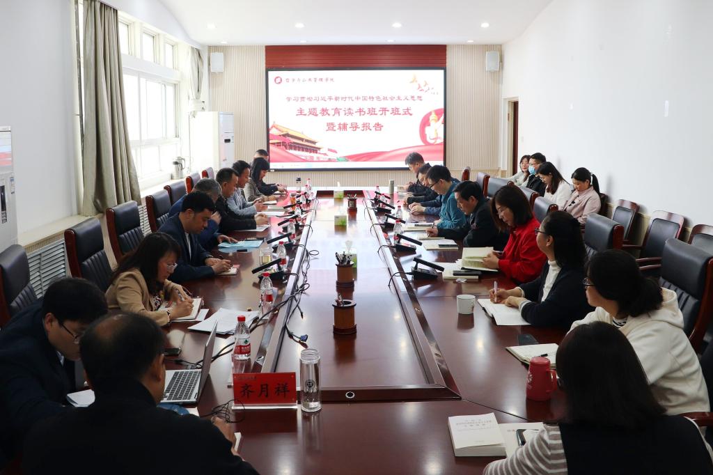 在第二会议室举行学习贯彻习近平新时代中国特色社会主义思想主题教育读书班开班式,校主题教育第三督导组组长王桂、成员王子梁、李婧受邀出席,学院领导班子全体成员、各支部书记、各系主任及各科室负责人参加了开班式。开班式由院党委书记党鸿军主持。
