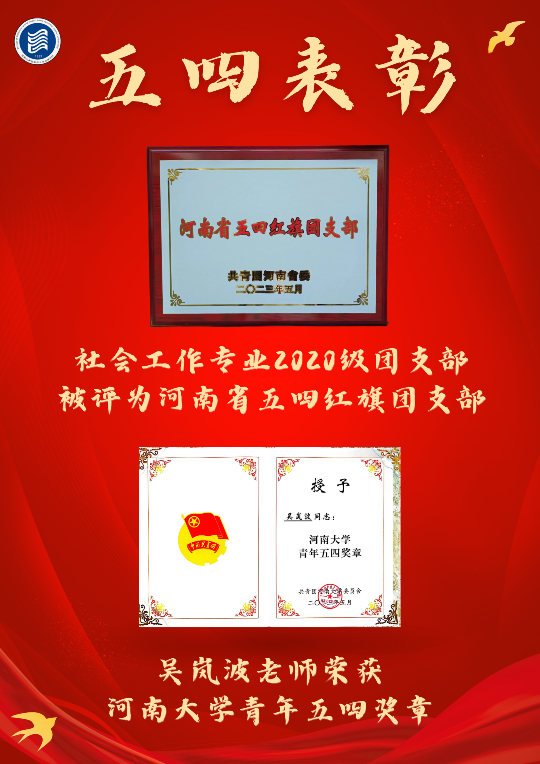 社会工作专业2020级团支部荣获“河南省五四红旗团支部”称号,行政管理系吴岚波老师荣获中文在线