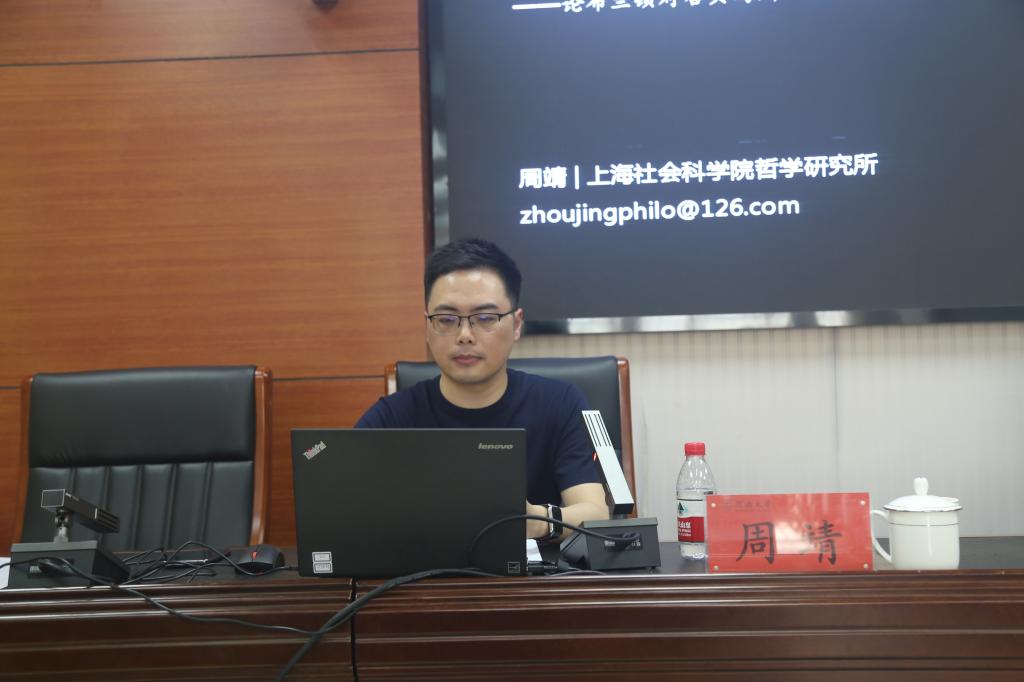 首先,周靖对布兰顿发展哈贝马斯“话语认识论”问题的背景做了相关介绍,他以罗蒂的论证为例,批判传统认识论,并指出罗蒂式批判的三大后果。他重点强调了哈尔马斯将“认知—交往”面向链合一处的“话语认识论”,以兔子吃蘑菇的例证兴趣是引导个体进入社会交往中,随后得出借助于社会劳动过程构成了我们的客观自然世界这一结论。接着,对于哈贝马斯认识论的不足,周靖介绍了布尔顿对话语认识论的发展,即将分析哲学奠定在实用主义的基础上,以凸显伦理身份对认识论的影响,并通过朴素与稳健的承认线索,做出语言可以表述出事实的阶段性小结。最后,周靖重点讲解了伦理关系对认识论的影响,以伦理向度、社会形式、信任分别论证了伦理关系与认知关系之间存在着根深蒂固的关联。