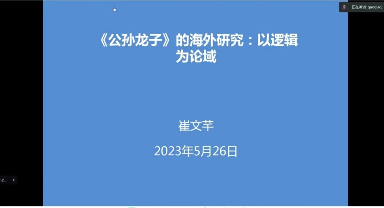 邀请,中国社科院哲学研究所崔文芊副研究员在线作了题为《〈公孙龙子〉的海外研究:以逻辑为论域》的学术报告。此次讲座由中文在线