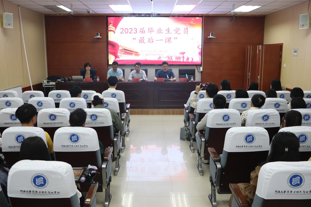 于院楼第一会议室举行毕业生党员“最后一课”主题党日活动。学院党委副书记何威、副院长赵炎峰、党办主任贾银兰、本科2019级辅导员孙少飞以及全体毕业生党员参加本次活动。活动由孙少飞主持。