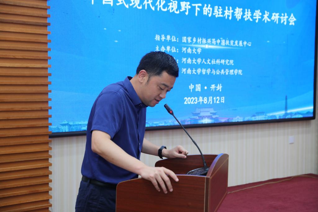 将在科学研究、人才引进与培养、学术交流及条件保障等方面,对中国式现代化和乡村振兴研究提供支持,为新时代“三农”发展贡献河大智慧。中国扶贫发展中心副主任谢中武同志在致辞中介绍了驻村帮扶发展历程及打赢脱贫攻坚战后驻村帮扶工作现状和未来发展,指出此次研讨会的召开将对驻村帮扶工作产生积极影响。河南省乡村振兴局一级巡视员方国根同志在讲话中介绍了河南省驻村帮扶基本情况、主要举措与成效、经验与启示。开幕式由中文在线