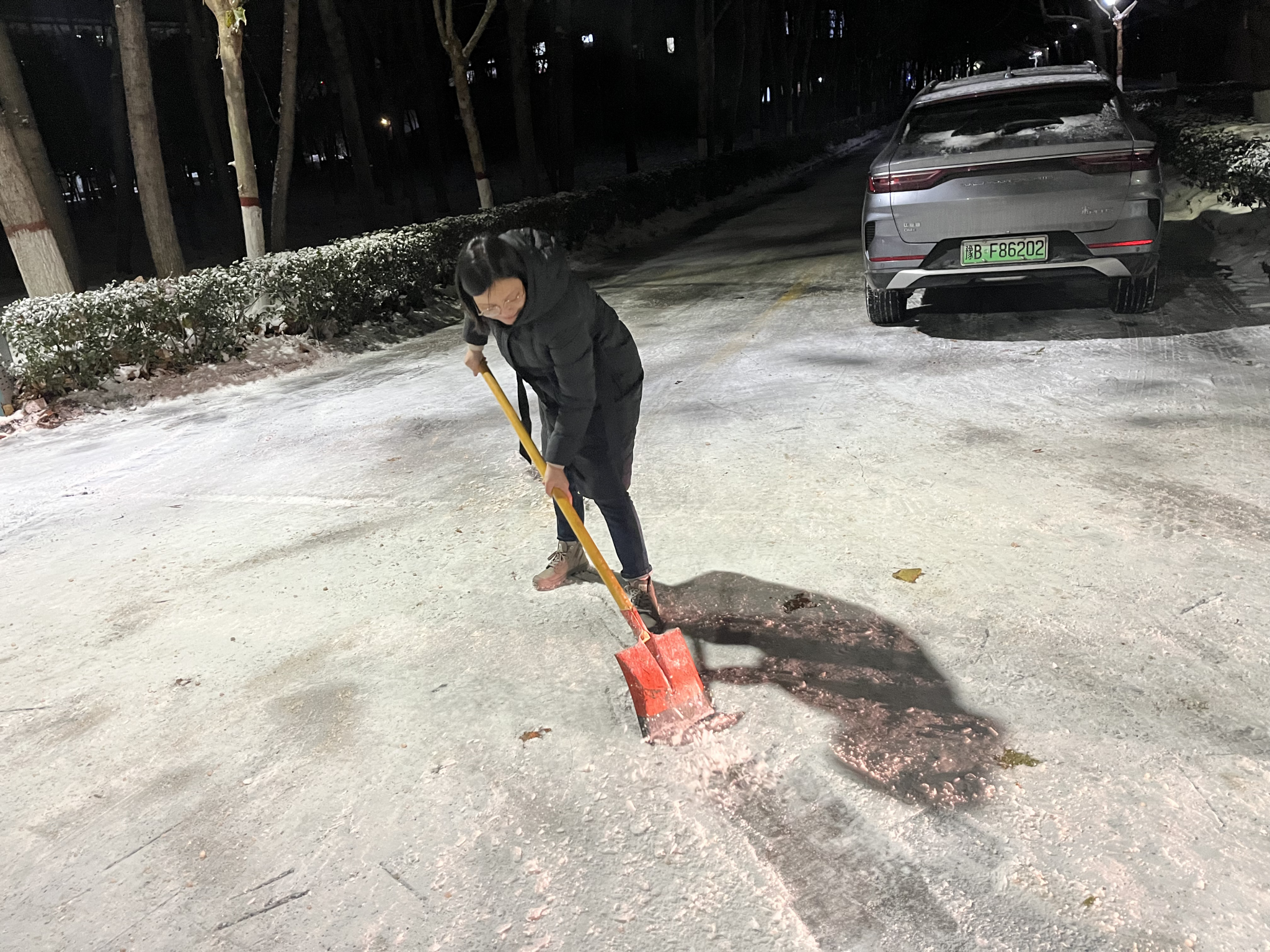 工会积极响应学校和学院党委清扫积雪号召,从早上到晚上,多次对学楼和南苑餐厅路面上的积雪进行破冰清扫。