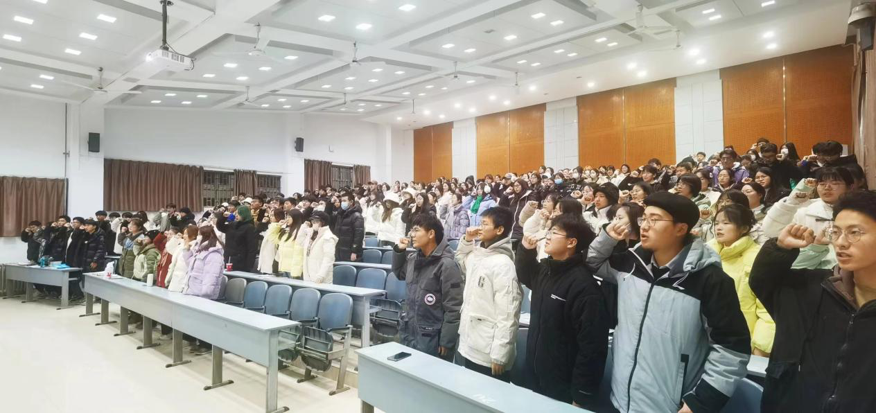 于12月25日晚在综合楼1201教室举行2023级本科生期末总结暨考前动员会。学院党委副书记何威出席并发表讲话,2023级全体本科生参加。会议由2023级本科生辅导员李蓓主持。