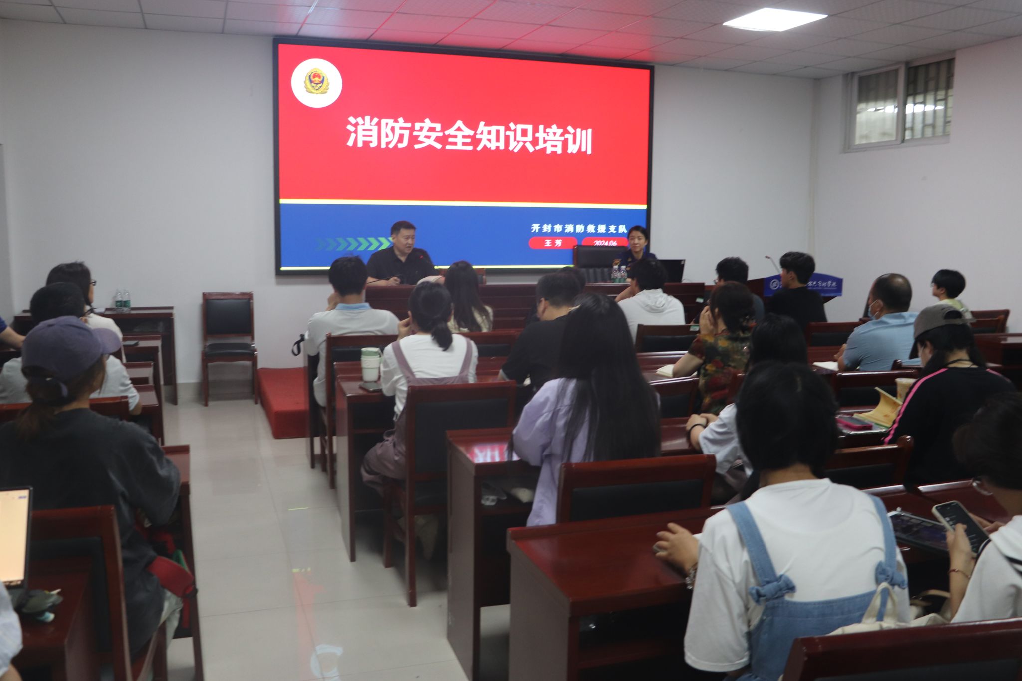 消防安全重于泰山。为提高学院师生的消防安全意识和应对火灾的防范能力,筑牢消防安全防线,6月7日下午,应学院邀请,开封市消防救援支队消防科科长王芳在学院第四会议室作了消防安全知识专题讲座。会议由院副院长王晓东主持,学院全体行政人员、各系室教师代表和学生代表参加。