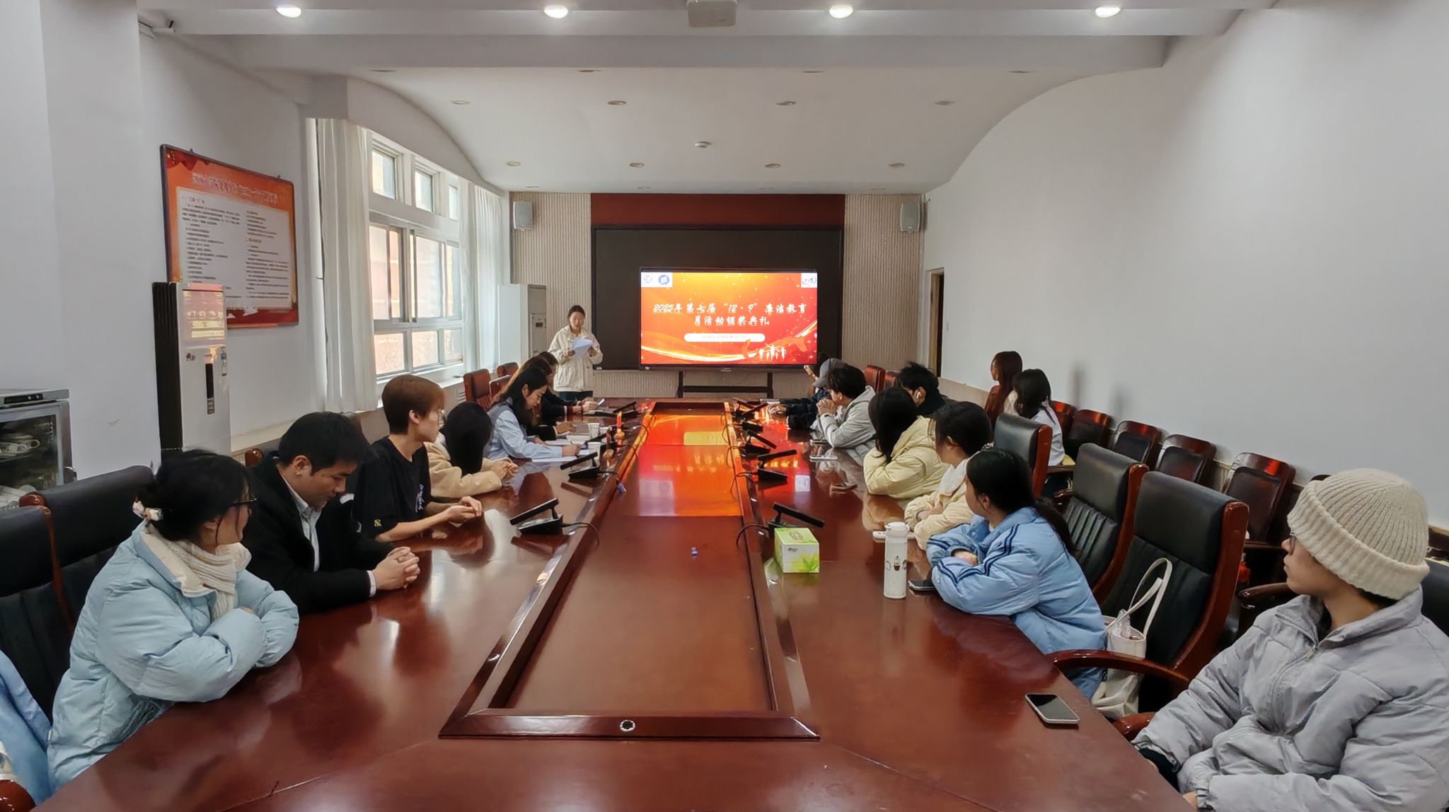 为弘扬廉洁文化,涵养清风正气,12月11日,第七届“12·9”廉洁教育月活动颁奖仪式在学院第三会议室举办。本次活动由校纪委、校团委以及院团委主办,明德廉风学社承办。纪委监委专员办公室综合室宣教科科长刘贺连,学院团委负责人李蓓及社团相关负责人出席活动。